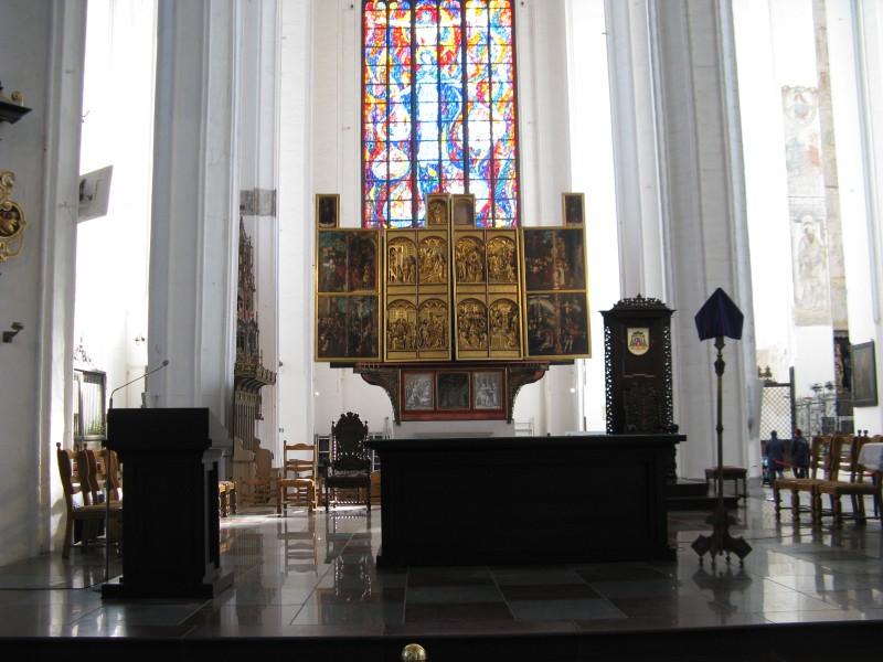 ... der (nach Restaurierung noch geschlossene) Hauptaltar.